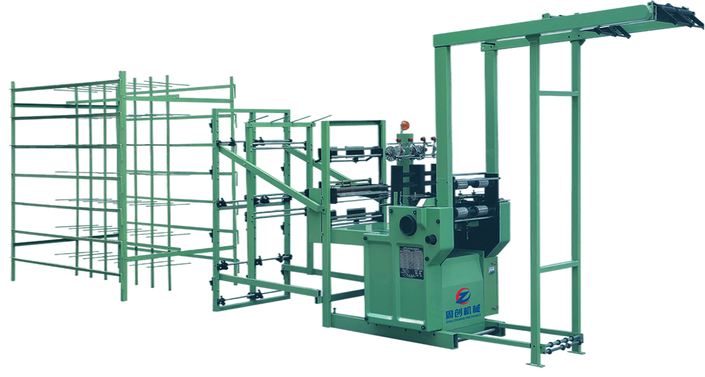 A: 我們一套過膠設備是高產能的一款機器,它能供給25臺織帶機使用。以5*7這個規格,按20小時計算,25臺織帶機的日產能達到:約130萬米。